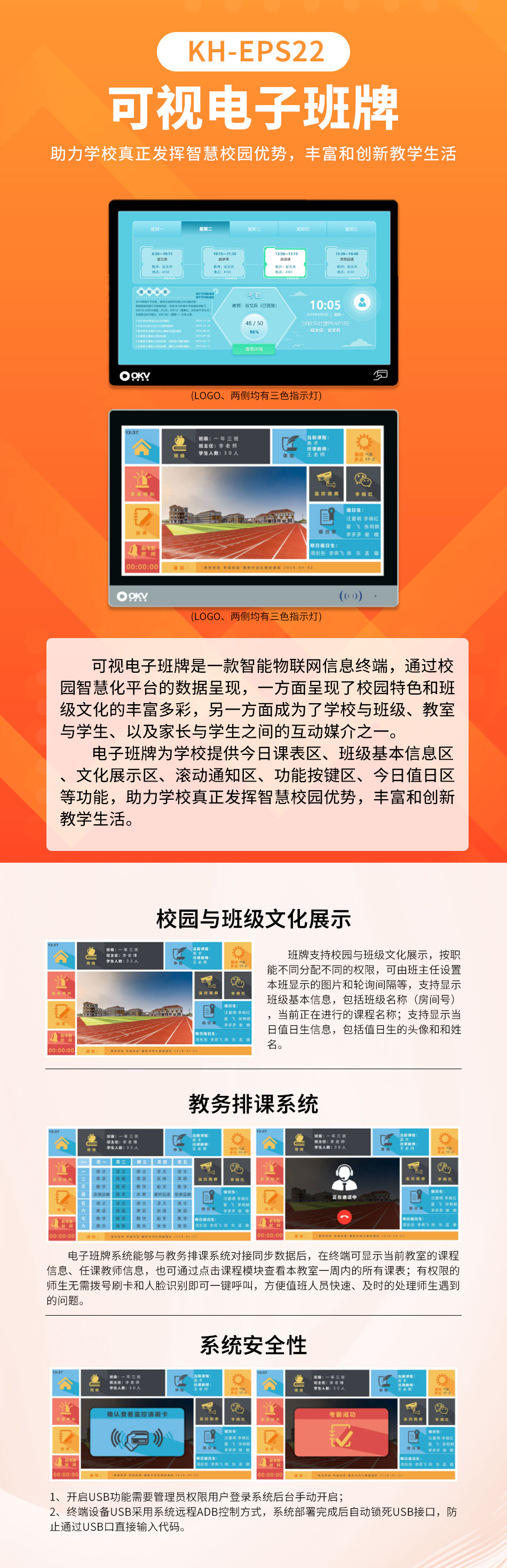 整機(jī)尺寸為長511*寬324*厚26mm;班牌三個區(qū)域配置紅綠橙三色燈,顏色可調(diào),可應(yīng)對不同工作狀態(tài)顯示;整機(jī)重量5.8kg;待機(jī)功率<5w,工作功率<60W;220V 供電; |