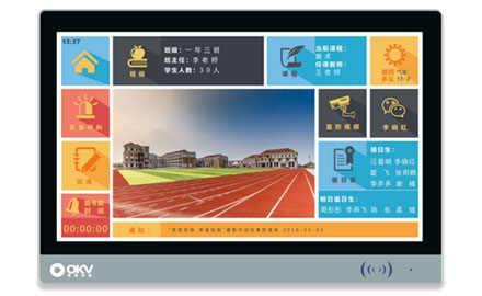 單目攝像頭200萬像素,鏡頭前置,支持1080P分辨率,支持人臉識別,攝像頭位于班牌下部; |