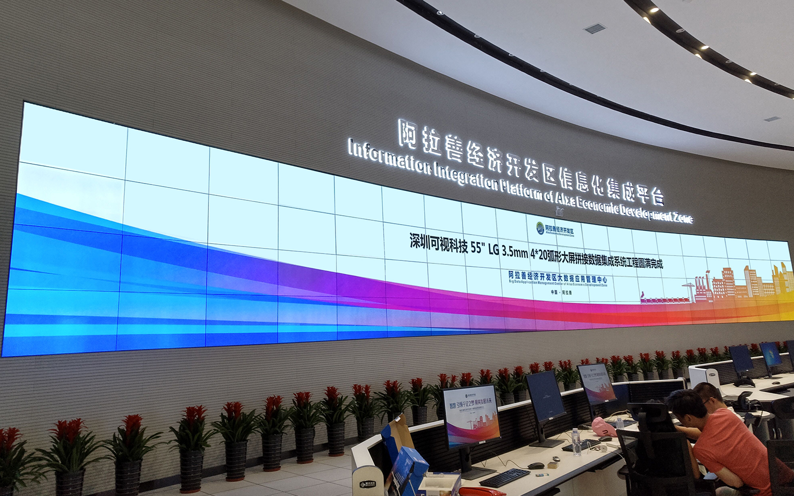 根據(jù)客戶(hù)實(shí)際應(yīng)用需求,我們?yōu)榭蛻?hù)定制了80(4*20)臺(tái) 55寸3.5mm 拼縫拼接屏,采用的安裝方式是落地支架安裝。